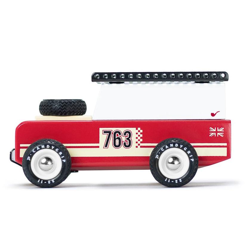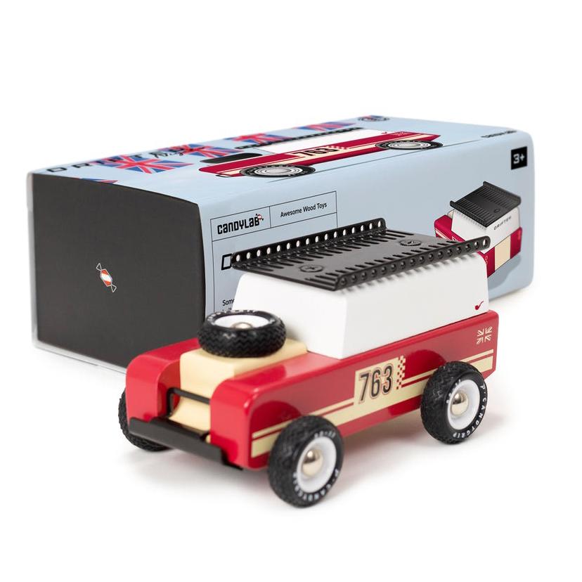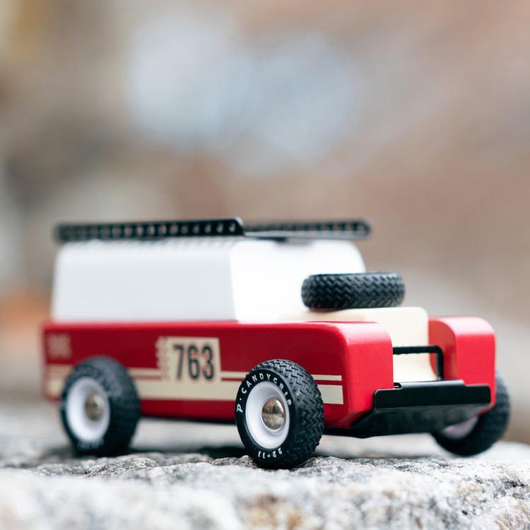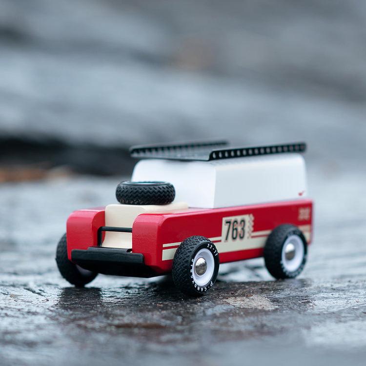 Legno massello di faggio, vernice a base d'acqua e rivestimento in uretano trasparente. Cerchi in plastica ABS bianca, con pneumatici in vera gomma alimentare. Sicurezza testata secondo la CPSIA statunitense e le normative europee, australiane e neozelandesi. Alcuni giocattoli possono contenere magneti incorporati.