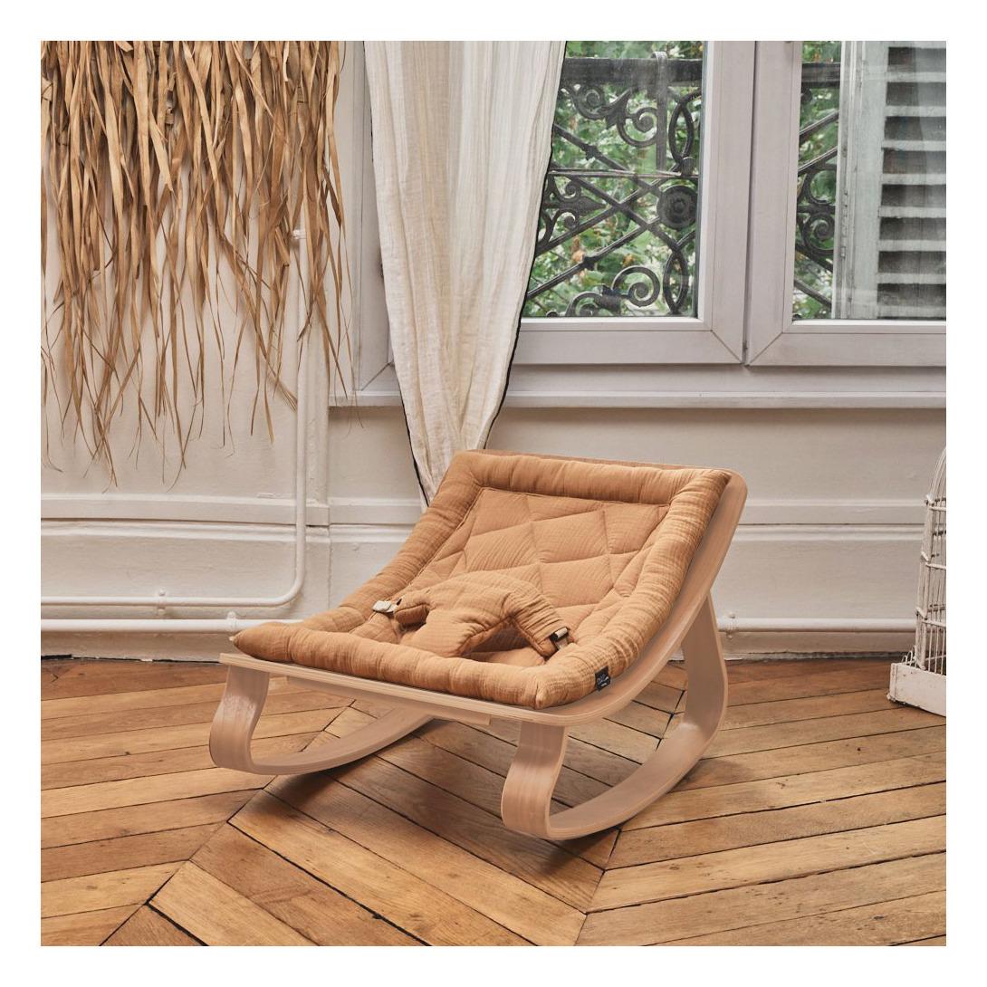 Sdraietta LEVO di Charlie Crane! Recentissima rivoluzione nell'ambito dell'arredamento per l'infanzia, questo prodotto elegante e alla moda è stato lussuosamente realizzato artigianalmente in Francia, e offre un'alternativa unica e innovativa alle solite sdraiette tradizionali; scolpita con estrema maestria dal multistrato di faggio, proveniente da fonti gestite in modo responsabile, la sua forma ergonomica è estremamente rilassante per i più piccini, e rappresenta un'aggiunta particolarmente accattivante per qualsiasi nursery! Caratterizzata da una seduta con imbottitura in tessuto felpato (con cintura di sicurezza a tre punti), risulta essere molto confortevole, grazie anche al suo dondolio delicato e naturale.